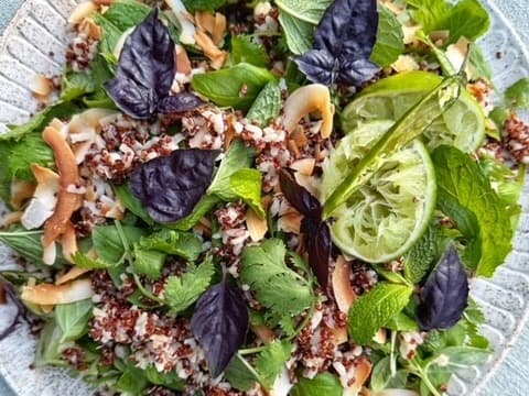 A traditional French salad from Nice, consisting of boiled egg, steamed potato, green beans, cherry tomato and olives. It is substantial enough to have on its owns or serve with tinned or grilled tuna or grilled chicken.