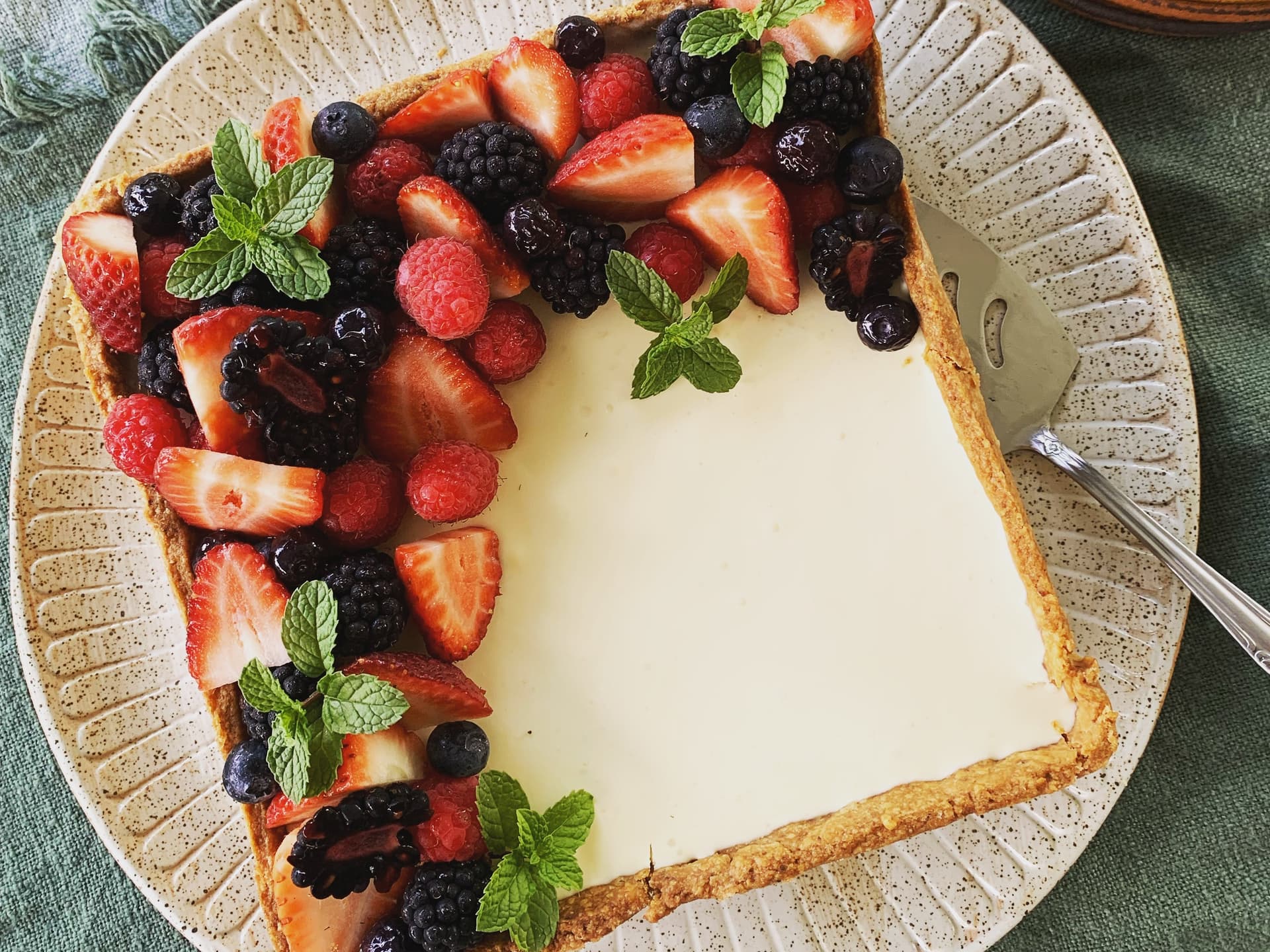 What a finish to a christmas feast it will be with this beauty hazelnut pastry filled with yoghurt panna cotta topped with fresh seasonal berries. This will feed 6-8