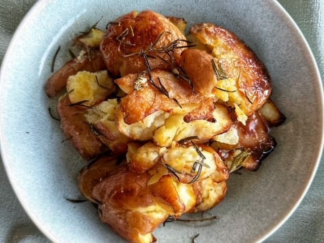 You will have a smashing time with these tatters they arrive steamed ready to smash roast in delicious duck fat sprinkle with smoked sea salt I'm sure this side will satisfy all potato lovers