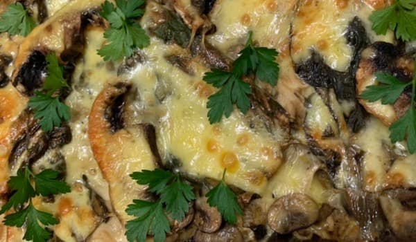 Chicken mince sauteed mushroom and leek simmered in stock, layered with pasta and bechamel finished with Parmesan cheese.