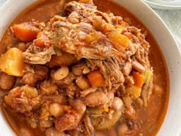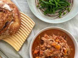 A classic French stew featuring pasture raised pork shoulder simmered with white bean, vegetables herbs & sprinkle of spice slow cooked until tender. serve with crusty bread on the side a steamed green beans.