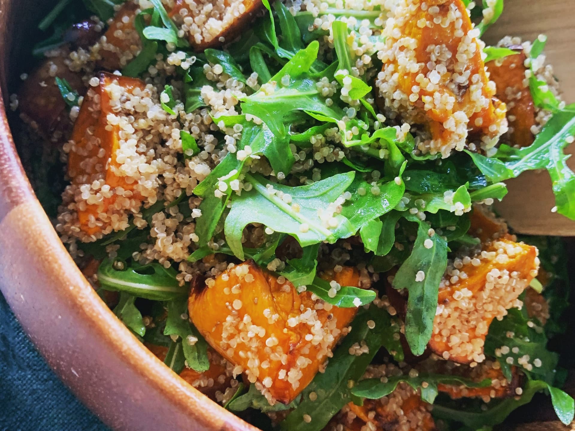 A light refreshing salad to compliment any BBQ or grille fish this good friday. Pumpkin roasted with chilli and ginger tossed with organic quinoa finished with lots of herbs and a lime dressing.