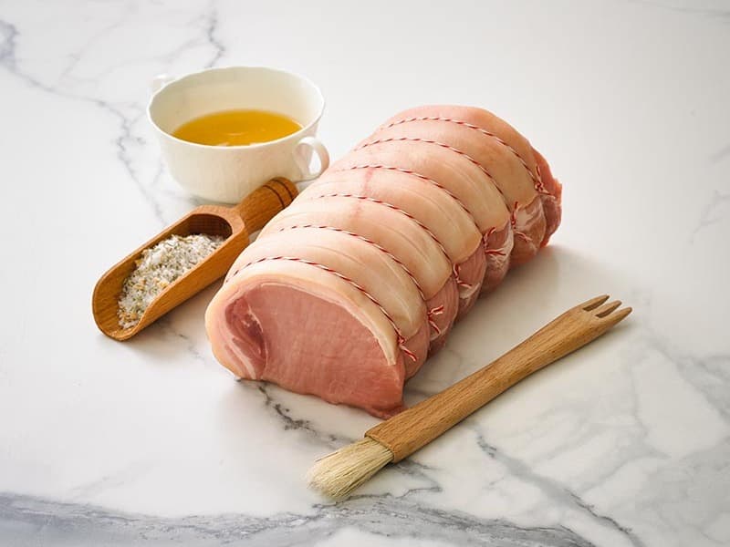 Crispy pork crackle on the outside; juicy flavoursome pork on the inside. A classic rolled and scored loin of Peter Bouchier Certified Free Range Pork without stuffing. Season liberally with our butcher's salt for a impressive addition the table. This is a fresh product and should be consumed within 2-3 days. Available either plain or rolled with Sage & Onion; or with Apricot & Macadamia These are a minimum of 2kg.