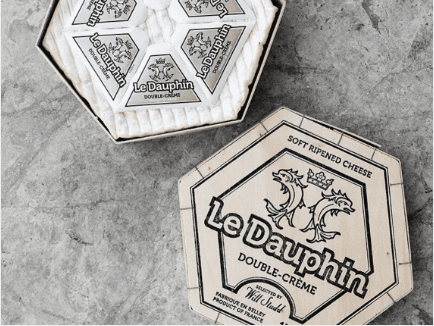 Le Dauphin Double-Créme is an unusual hexagonal cheese is a guaranteed crowd-pleaser and takes its name from the term once used to describe the heir apparent to the throne of France. Made from rich cow’s milk collected from the beautiful green mountain pastures surrounding the Rhône Valley, it was specially created for Will using a combination of modern techniques and a careful selection of traditional surface moulds. The wooden box is important because it protects the cheese, and also creates a unique micro-environment for maturation. Best enjoyed fully ripened when exceptionally soft, silky and deliciously creamy.