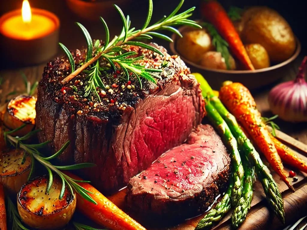 Savor the rich flavors of perfectly roasted beef, carved to perfection and served rare for a tender, melt-in-your-mouth experience. Served with a horeseradish sauce. Min 1kg, est serves 8-10.