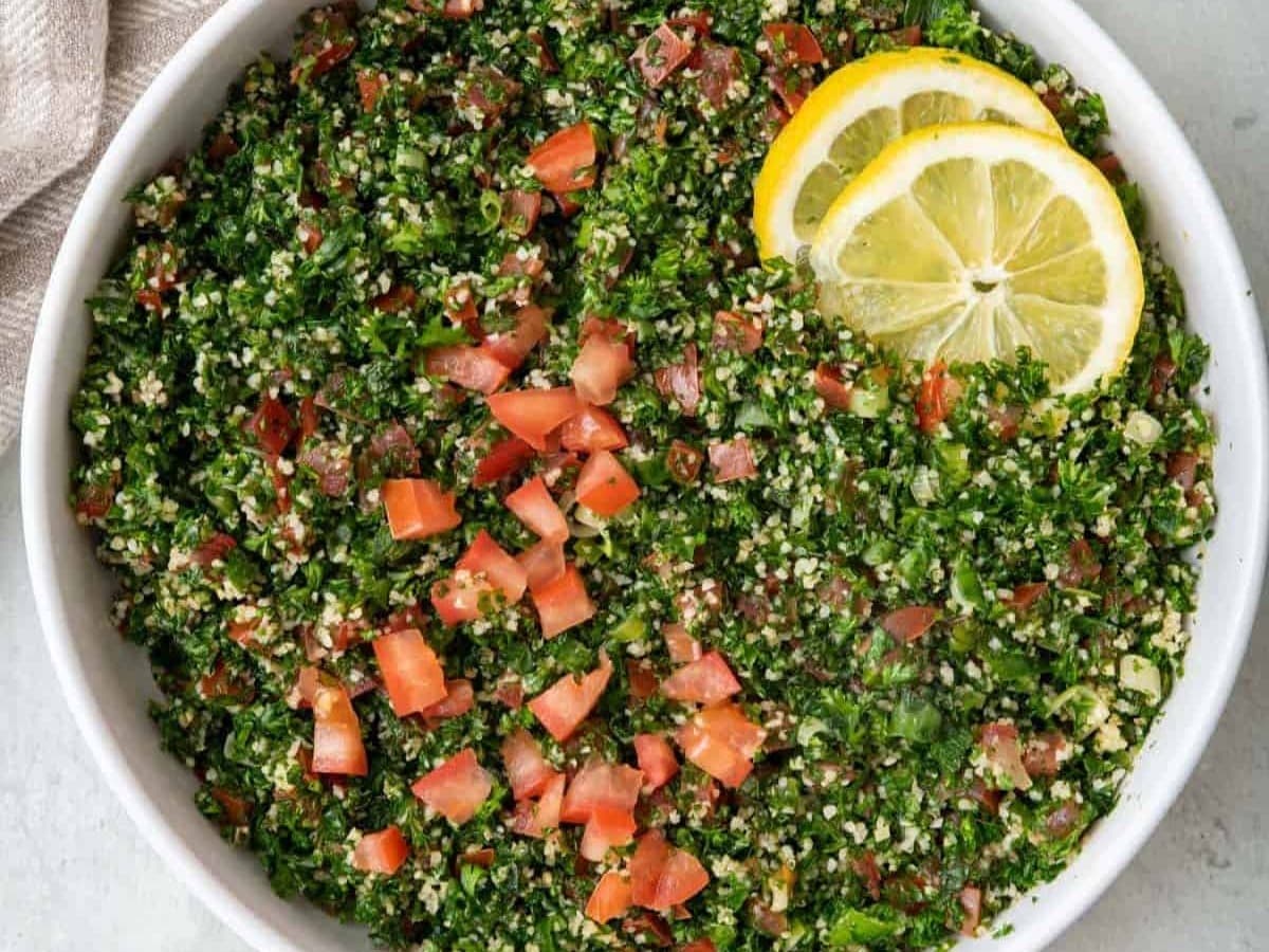 A refreshing Middle Eastern salad made with bulgar wheat, cucumber, tomato, onion and finely chopped parsley & coriander. Served with a lemon vinaigrette. Est serves 6-8.