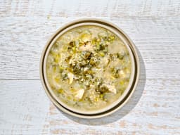 Chicken, Rice & Fennel Soup Base [Brown rice, Chicken stock (Wheat), Water, Chicken, Fennel, Onion, Carrots, Kale, Garlic, Rosemary, Thyme], Shredded whole roasted chicken