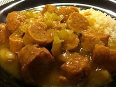 Home style curry sausages Just like Mumma made them served with basmati rice or Vegetables choose up to three sides
