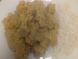 Sausages, Chicken stock, Diced onion, Carrot diced, Full fat milk, Celery, Basmati rice, Flour (Wheat), Salted butter (Milk), Tomato sauce, Worcestershire sauce (Wheat, Fish), Curry Powder, Cauliflower, Peas, cabbage