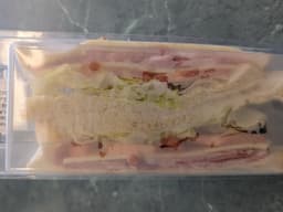 Creamy seasoned egg salad served on fresh bread with iceberg lettuce