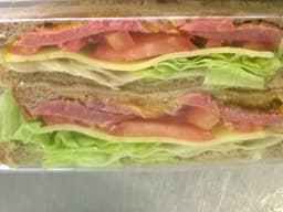 Corned Beef, White bread (Wheat), Tomato, Salted butter (Milk), Iceberg, Cheese slices (Milk), Mustard pickles, Salt, Black pepper