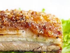 Tender Pork Belly with crunchy crackle. This dish is scented with fennel & sage and has cinnamon overtones. Served on vegetables with our homemade apple chutney (Chutney contains gluten)