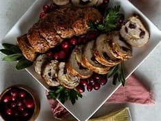 A Christmas essential. Tender turkey stuffed with a cranberry and apple stuffing. served with mashed potato vegetables and cranberry sauce