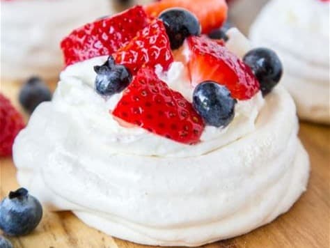 Crunchy outside with a marshmallow centre and topped with a mascarpone whipped vanilla cream served with tropical fruits
