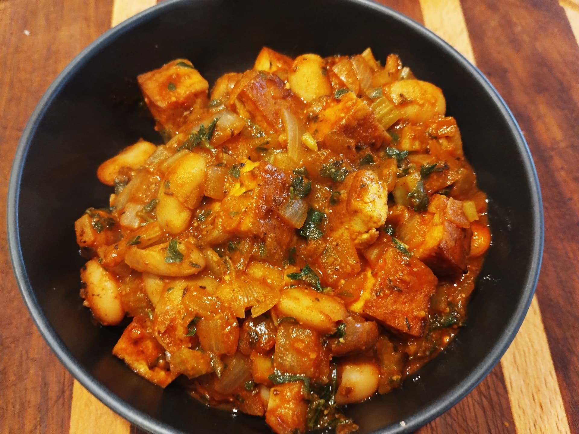 An indulgent stew for special occassions made with our home-made smoked tofu, butter beans and fresh herbs, it's a taste sensation!