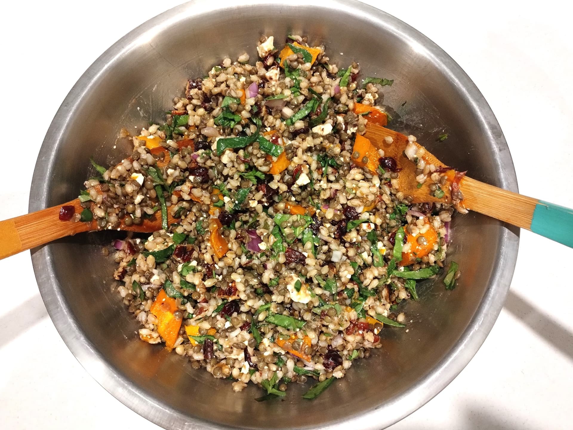 A salad worthy of being called a main meal. With Freekeh (an ancient whole grain of roasted young green wheat), French Lentils, fresh herbs, candied pecans and a delicious cranberry and red wine vinegar dressing, there's a lot to love about this salad. Vegan option available (please let us know in 'notes')
