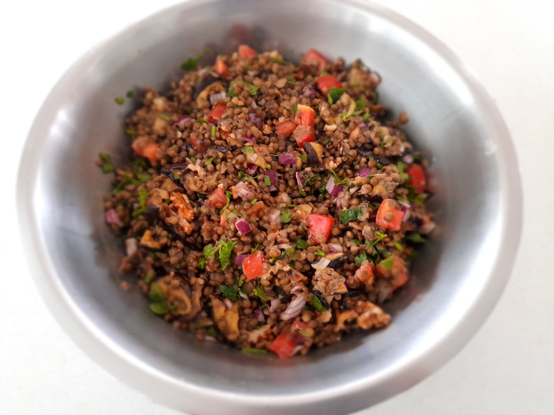 French lentils, grilled eggplant, Spanish onion, tomato, parsley and walnuts dressed with a Dijon mustard vinaigrette (nuts can be left out on request).