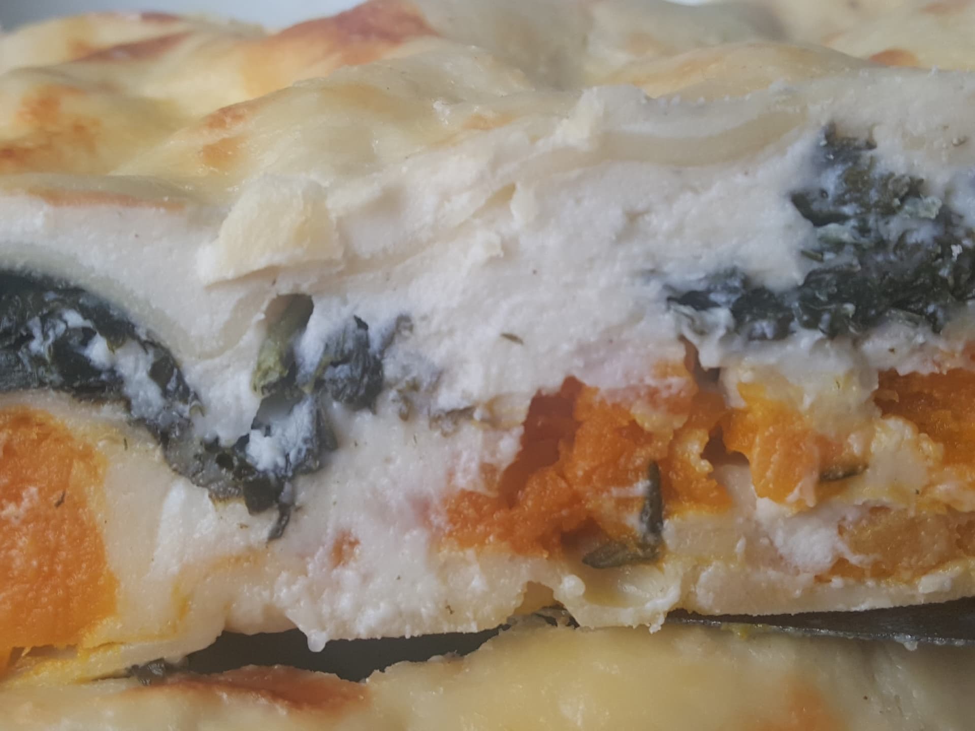 Roast pumpkin and steamed curly kale layered with a thyme and Dijon mustard béchamel sauce and three cheeses.