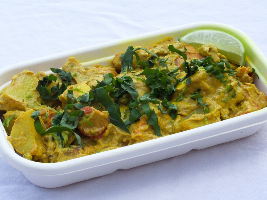 Home made curry paste, coconut milk, potatoes, sweet potatoes and pan-fried tofu finished with green beans, coriander and lime. If you don't like tofu, ask us to leave it out.