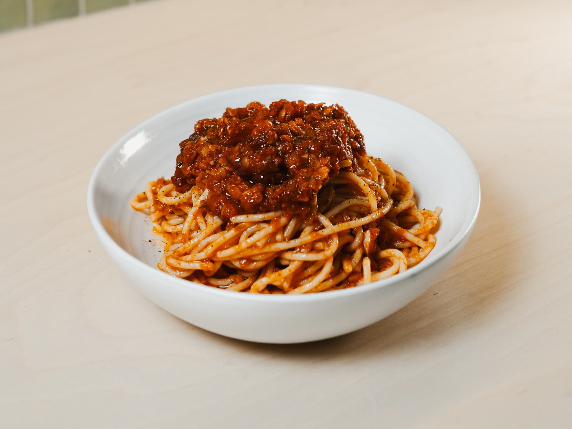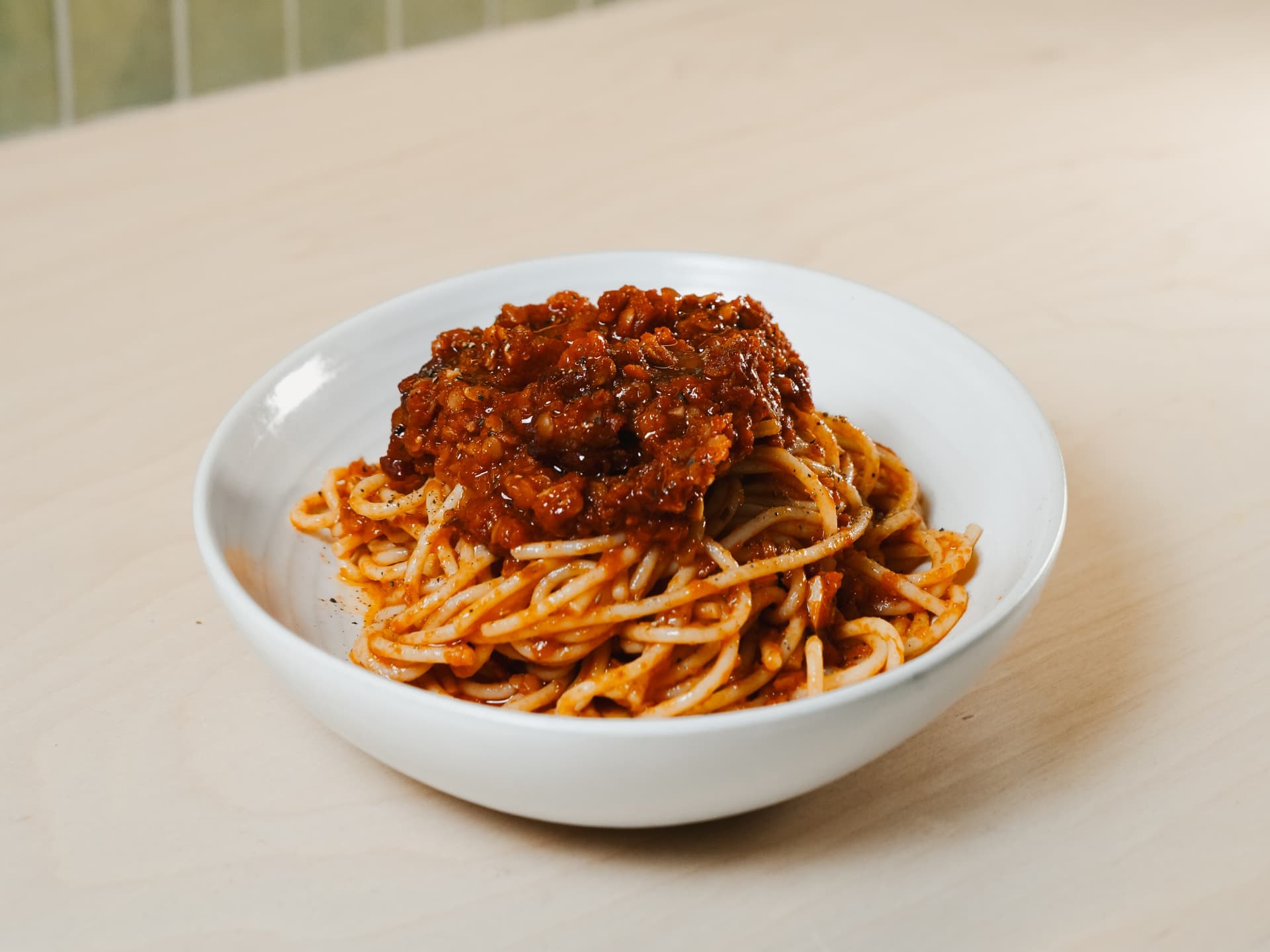 A rich tomato and lentil ragù, slow cooked, aromatic. A nourishing plant-based favourite.