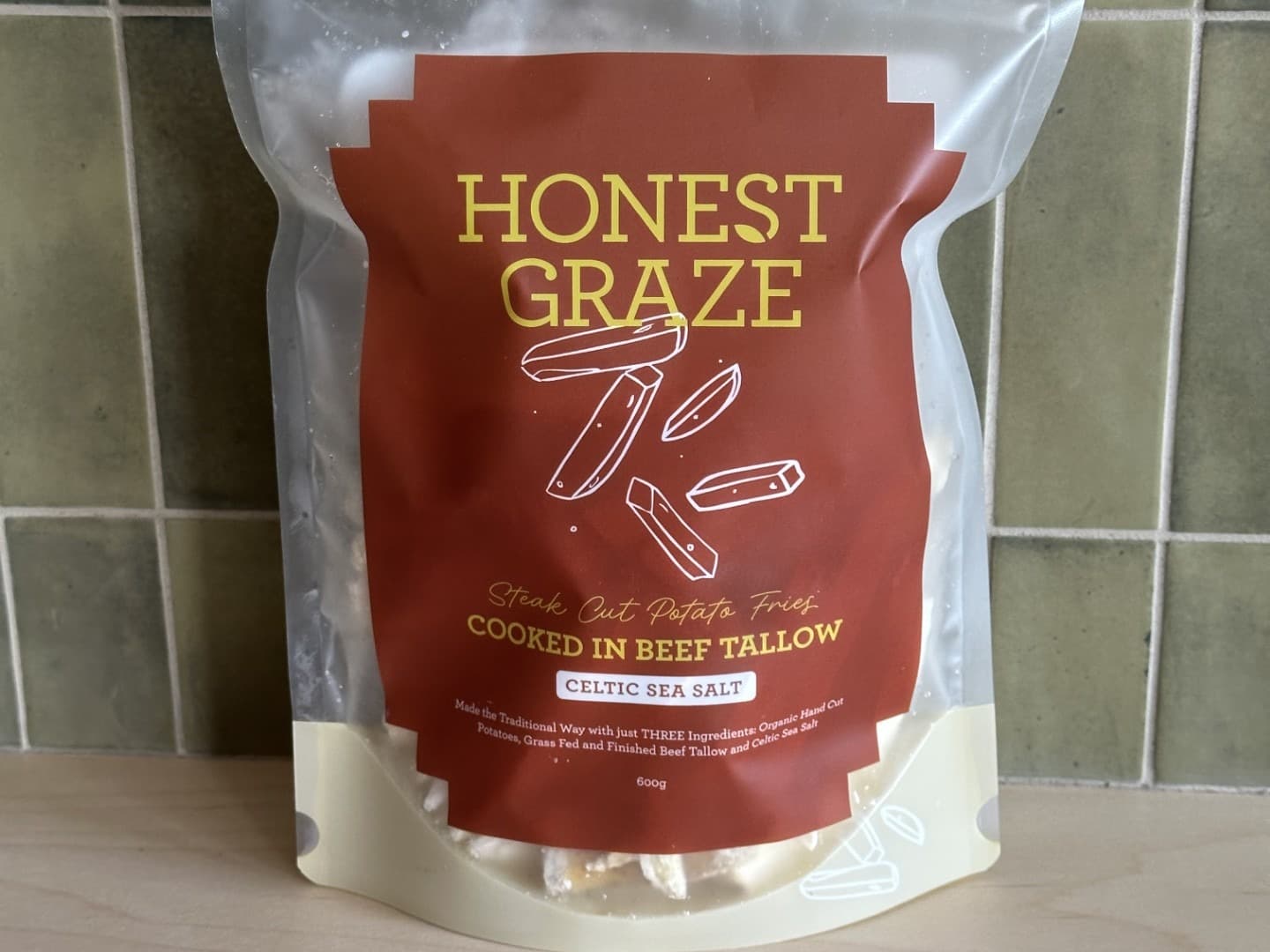 Steak Cut Potato Fries cooked in Beef Tallow with a pinch of Celtic Sea Salt