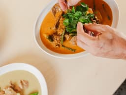 Beef braised in coconut milk with red curry paste and lemongrass, finished with lime leaf and snake beans. Rich and warming.