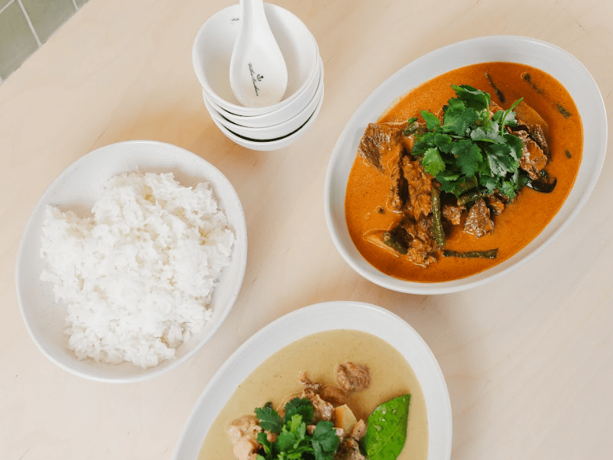 Beef braised in coconut milk with red curry paste and lemongrass, finished with lime leaf and snake beans. Rich and warming.