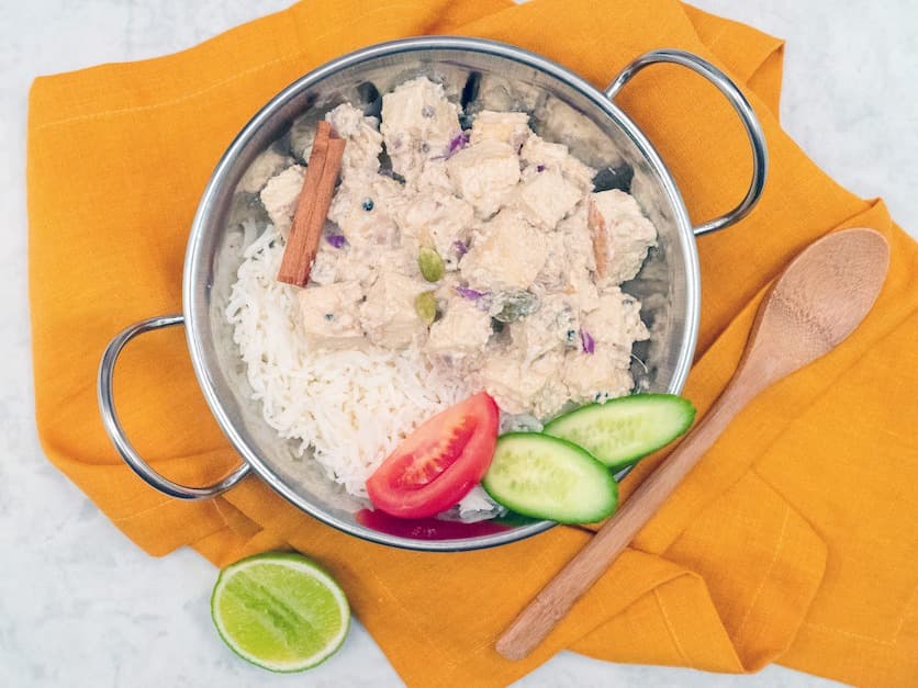 This famous dish from South India is jam-packed with seasonal vegetables, cooked together with delicious spices, coconut yoghurt and shredded coconut. Served with basmati rice. Spiciness: mild. Keep refrigerated. Use within 14 days.