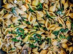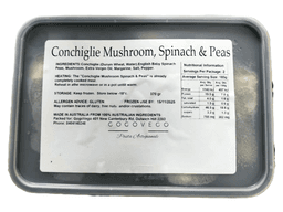 Fresh conchiglie pasta mixed with mushrooms, spinach and green peas cooked in extra virgin olive oil. Artisanally made in Sydney. Use within 3 days. Only suitable for Wed/Thu delivery.