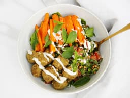 Falafel and tabbouleh salad with roasted carrots