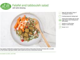 A fresh and hearty salad bowl. Our variation of tabbouleh is bolstered by lentils and nutritious hemp seeds. The dish is rounded off with Syndian super green falafels, sweet roasted carrots and a creamy tahini dressing. Pantry items needed: olive oil, extra virgin olive oil, salt, freshly ground black pepper; Hands-on: 15-20 mins, ready in: 25-30 mins; Cooking equipment: baking tray/s; Use within 5 days of receiving your meal kit.