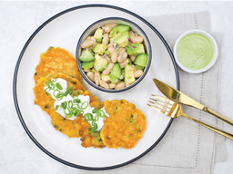 Our triple corn fritters are fluffy on the inside and crisp on the outside with a zingy and creamy green goddess dressing. They make the perfect accompaniment to a protein-packed white bean and avocado salad. Pantry items: plant based milk, olive oil; Hands-on: 15 mins, Ready in: 20 mins; Cooking equipment: large non-stick frying pan; Use within 5 days of receiving your meal kit.