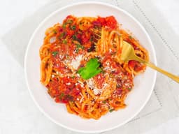 A delicious, robust tomato sauce coats premium, wholemeal La Molisana spaghetti along with breadcrumbs. Served with vegan parmesan. A warming meal that showcases tomato in all of its forms. From the toe of Italy with love. Spiciness hot. Pantry items needed: olive oil, tomato paste, salt; Hands-on: 15-20 mins, ready in 20 mins; Cooking equipment: large pot, deep frying pan/large pot; Use within 5 days of receiving your meal kit.