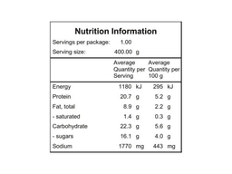 Tofu (Soy), Tomato puree, Nutritional yeast, Spinach, Turmeric, Paprika ground, Salt, Kale, Mushroom, Onion, Garlic, Vinegar, Cannellini beans, Brown sugar, Mustard, Molasses, Apple cider vinegar, Black pepper