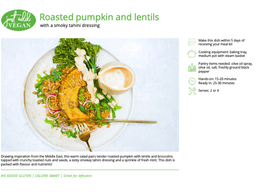 Drawing inspiration from the Middle East, this warm salad pairs tender roasted pumpkin with lentils and broccolini, topped with crunchy toasted nuts and seeds, a zesty smokey tahini dressing and a sprinkle of fresh mint. This dish is packed with flavour and nutrients! Pantry items needed: olive oil spray, olive oil, salt, freshly ground black pepper Hands-on: 15-20 mins, ready in: 25-30 mins Cooking equipment: baking tray, medium pot with steam basket Use within 5 days of receiving your meal kit.