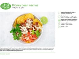 Nachos is a go-to family favourite for a reason! In this version, a flavour-packed wholesome kidney bean mixture sits atop golden toasty corn chips, all baked in the oven with a sprinkle of cheese. Served with a fresh and zesty pico de gallo, this is a nachos the whole family will enjoy! Pantry items needed: vegetable oil, salt, freshly ground black pepper; Hands-on: 35 mins, ready in: 40-45 mins; Cooking equipment: large deep baking dish, large deep frying pan; Make this dish within 5 days of receiving your meal kit.