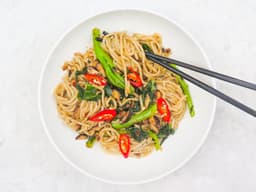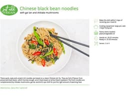 These quick, tasty and umami-rich noodles are based on a classic Chinese stir fry. They are full of flavour from preserved black beans, which funnily enough, aren't black beans at all but black soybeans! Fresh noodles are complemented by shiitake mushrooms, gai lan and bird's eye chilli for just the right amount of warming heat. Spiciness medium / optional. Pantry items needed: peanut/vegetable oil; Hands-on: 20-25 mins, ready in: 25-30 mins; Cooking equipment: large pot, wok/large frying pan; Use within 5 days of receiving this meal kit