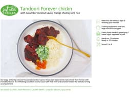 Our tangy, brilliantly coloured housemade tandoori spices infuse plant based chickn style shreds from Forever with incredible flavour. The refreshing cucumber coconut sauce with fresh mint and coriander makes the ultimate serving accompaniment. Spiciness mild. Pantry items needed: agave/caster sugar, vegetable oil, salt Hands-on: 15 mins, ready in: 25 mins Cooking equipment: small pot, large non-stick frying pan Use within 5 days of receiving your meal kit