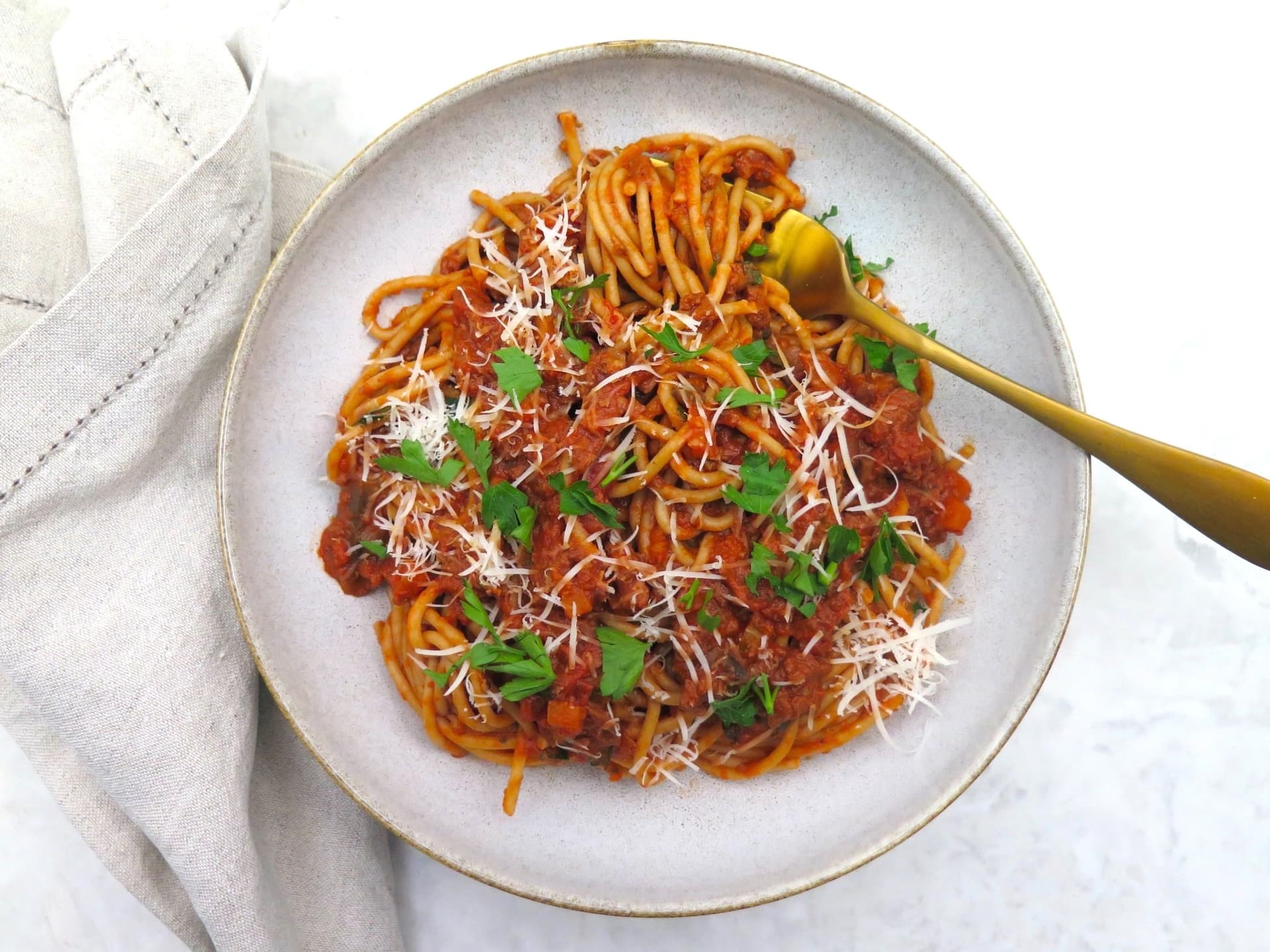 A new and improved version of this classic dish now offered in 3 serve and 6 serve size, making it very budget friendly! This dish uses textured vegetable protein mince and comes with a rich and generous bolognese sauce brought together perfectly with house-made seasonings. Time to enjoy the classic, guilt free! Pantry items needed: olive oil, brown sugar (optional), tomato paste, unsweetened soy milk, red wine Hands-on: 25-30 mins; ready in: 45 mins Cooking equipment: large pot x 2 Use within 5 days of receiving your meal kit.