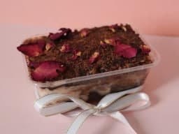 Gorgeously lush layers of espresso sponge cake and silky cream layers, topped with a dusting of cocoa powder. Indulgent, delectable, you'll find it hard to share! No nuts, soy, dairy, or coconut oil. Store in fridge for two weeks shelf life.