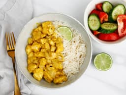 Pasanda is a curry not dissimilar from the well known korma. Differentiating itself with its mix of aromatic spices, ground almonds and soy cream. Pasanda is a mild curry everybody will love! Served with a simple kachumber salad and fluffy basmati rice, it's a winner. Pantry items needed: vegetable oil, salt, freshly ground black pepper; Hands-on: 30 mins, Ready in: 35 mins; Cooking equipment: large deep frying pan, small pot; Use within 5 days of receiving your meal kit.