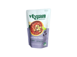 Vegan Made Easy's Black Bean Fiesta has a fresh lime zing and is great over rice. Add corn chips, sour cream, cheese and/or guacamole for a fiesta of flavour! 2 Servings per package. Keep refrigerated. Use within minimum 2 weeks.