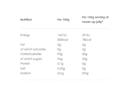 With Just Wholefoods Lemon Jelly it’s easy to make vegan jelly at home. Simply add boiling water, give it a good stir and leave it to set. Pack size: 85g. Makes 1 pint, serves 4. Store in a cool, dry place.