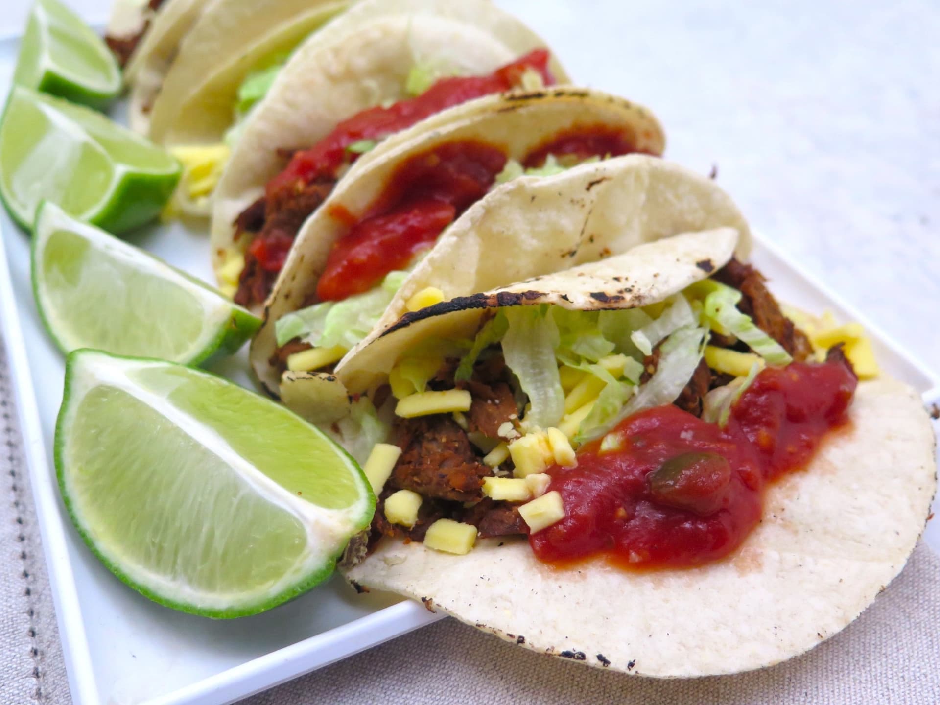 The classic throwback taco you know and love with a plant-based twist! Stuffed with shredded Fable mushroom meat, cheddar cheese, crunchy iceberg lettuce and chunky mild salsa, all hugged in our new handmade white corn tortilla. Pantry items needed: olive oil, salt, tomato paste