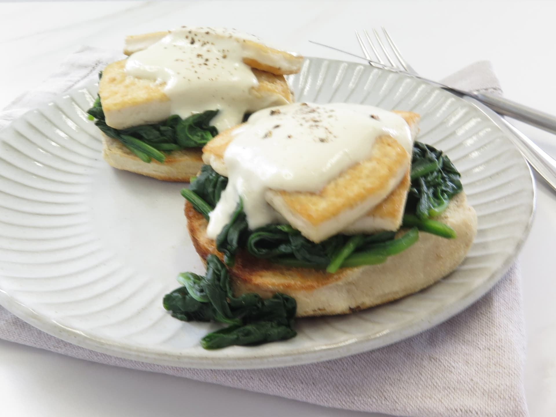 Fresh baby spinach topped with egg-flavoured tofu and our house-made hollandaise sauce on premium sourdough English muffins. This is a beautifully flavoured brunch dish that is packed with healthy nutrients. There's no better way to start your weekend! Pantry items needed: freshly ground black pepper, plant based butter, salt, vegetable oil Hands-on: 25-30 mins, ready in: 25-30 mins Cooking equipment: large non-stick frying pan, medium/large pot Use within 5 days of receiving your meal kit.