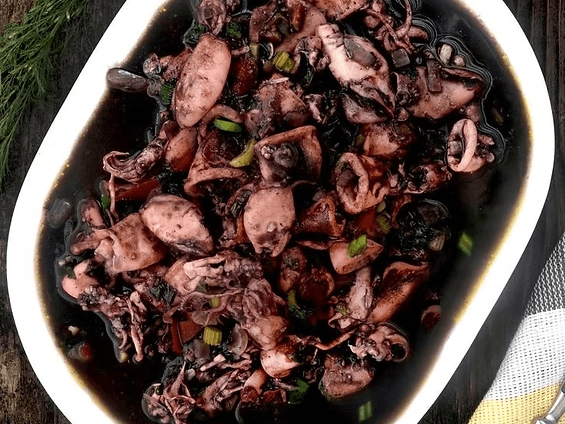 Experience rich Adobong Pusit from Kain Food Co.! Enjoy tender squid in tasty adobo sauce with garlic, onions, soy sauce, vinegar, and bay leaves. Ready in minutes, great for busy friends. Enjoy great food and save time. Order now and enjoy at home!