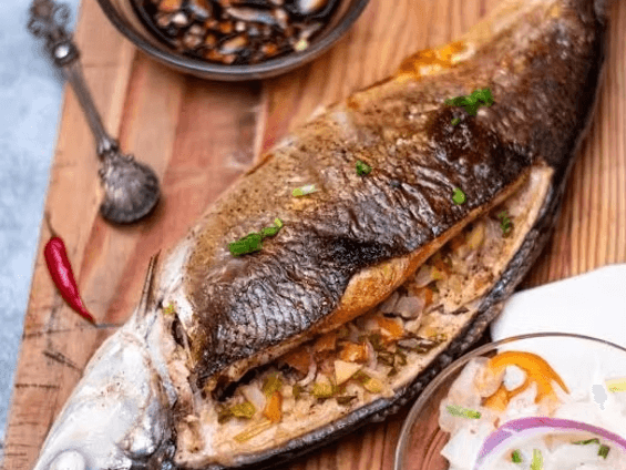 Savor the rich, authentic taste of Inihaw na Bangus (Whole) from Kain Food Co. Perfect for the entire family, this Filipino favorite features fresh milkfish marinated with tomatoes, onions, and other ingredients, then grilled to perfection. The dish also includes tomatoes, onions, and sauce stuffing inside the fish, enhancing its flavors. Each bite bursts with delicate flavors, bringing the essence of traditional Filipino cooking straight to your table. Ideal for busy mates who crave delicious, homemade meals with minimal effort. Enjoy a wholesome, mouth-watering dish that embodies the heart and soul of Filipino cuisine.
