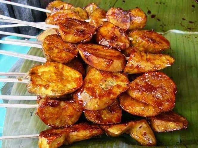Caramelised whole bananas fried to golden perfection on skewers. Crispy, sweet, and warm - a beloved Filipino street food classic.