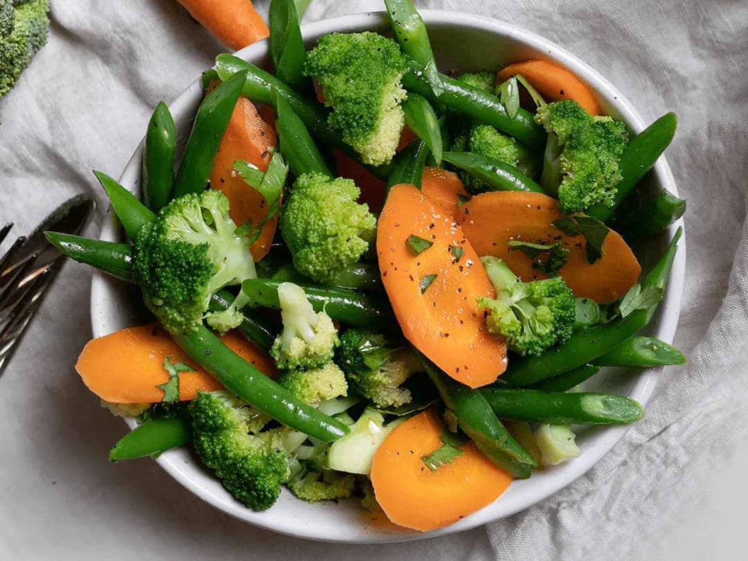 A generous bowl of fresh market vegetables, prepped and ready to blanch and toss in garlicky, herby butter. Perfect as your mid-week veggie component and pairs wonderfully with your choice of protein. Great for kids' plates too—it's just really convenient!