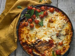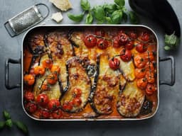 Eggplant, nap sauce [Tomatoes, Onion, Basil, Garlic], Spinach, pangrattata [Bread (Wheat), Olive oil, Rosemary, Thyme, Garlic], Mozzarella (Milk), Parmesan (Milk), Basil, Sage